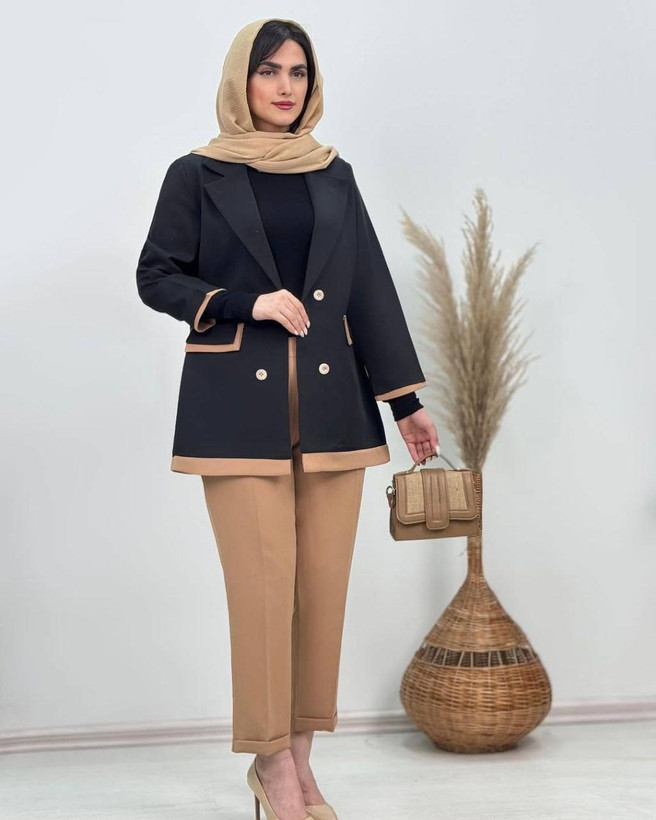 📄توضیحات :کت شلوار مازراتی دو رنگ )رنگ شلوار هماهنگ با رنک حاشیه کت